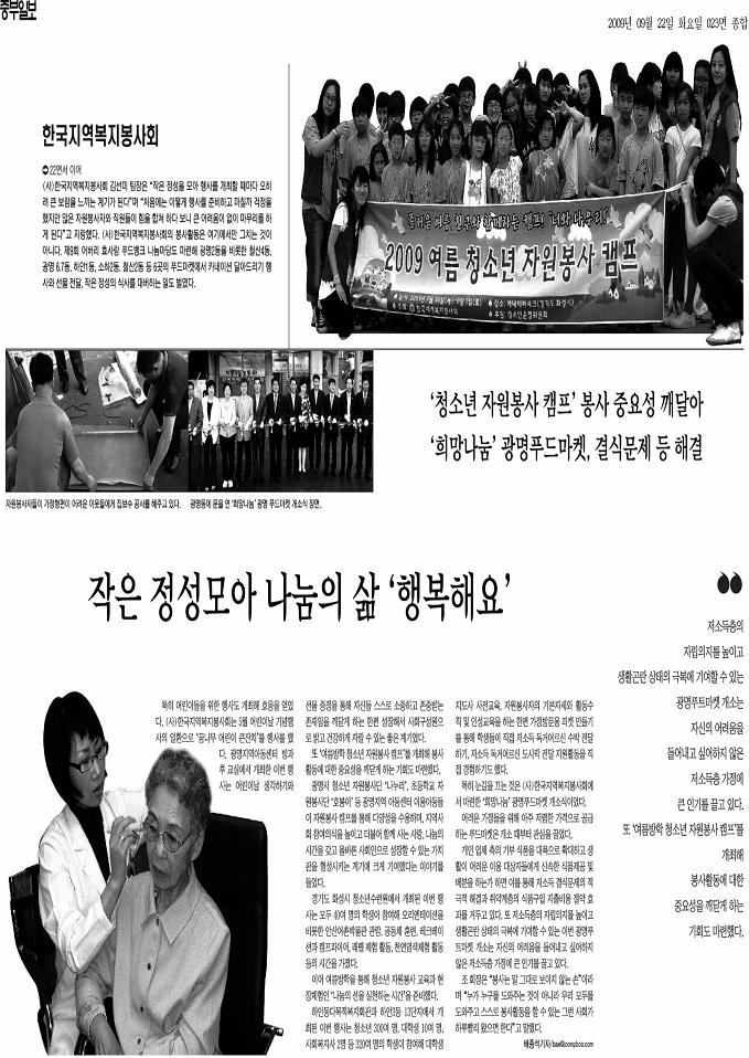 사랑나눔을 실천하는 한국지역복지봉사회 페이지 정보 작성자 최고관리자 댓글 0건 조회 7,129회 작성일 09-09-23 00:00 본문 사랑나눔을 실천하는 한국지역복지봉사회 목록 이전글사랑나눔을 실천하는 한국지역복지봉사회 09.09.23 다음글2009년 여름방학 청소년 자원봉사현장체험 09.08.13