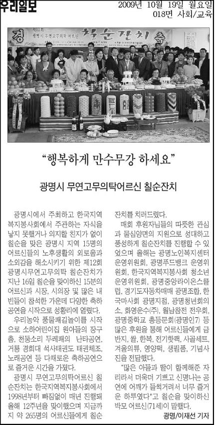 제12회 광명시무연고무의탁 어르신 칠순잔치 페이지 정보 작성자 최고관리자 댓글 0건 조회 8,140회 작성일 09-10-23 00:00 본문 제12회 광명시무연고무의탁 어르신 칠순잔치 목록 이전글제12회 광명시무연고무의탁 어르신 칠순잔치 09.10.23 다음글봉사는 동정아닌 아픔고통을 함께 나누는 것 09.09.23