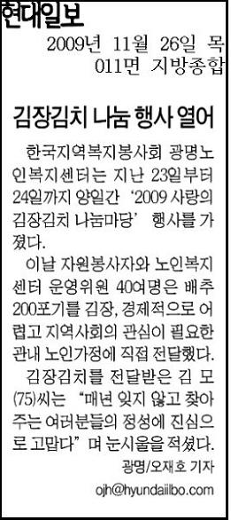 2009 사랑의 김장김치 나눔마당 페이지 정보 작성자 최고관리자 댓글 0건 조회 8,032회 작성일 09-11-26 00:00 본문 2009 사랑의 김장김치 나눔마당 목록 이전글2010년 떡국떡 만두나눔마당 보도자료 10.02.16 다음글한국지역복지봉사회 창립 12주년 기념 09.11.24